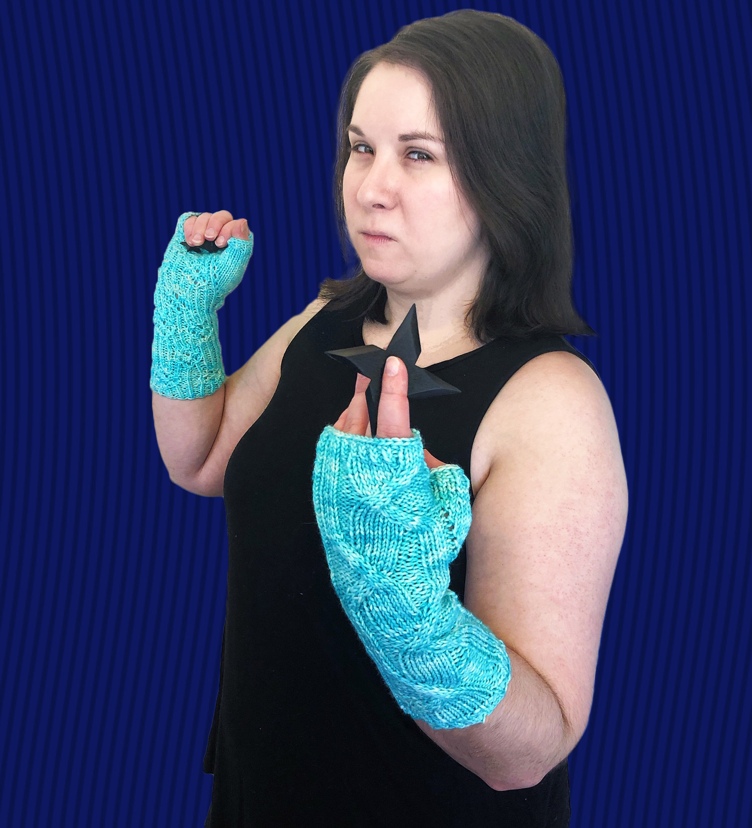 - Beau’s Bracers – Published June 2020 Inspired by Beau’s Maelstrom Gloves and her training as a monk of the Cobalt Soul, these are fingerless mitts featuring cables reminiscent of lightning on one side and of Zen-like discipline on the other. Knit with one skein of Critical Sheep D10 Worsted.